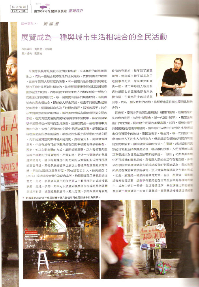 在去年的威尼斯建築雙年展中,劉國滄以命名為「時間的海洋,活著的房子」的作品主題與水都威尼斯對話,訴說著他對城市環境與建築空間的思維。在充滿歷史情調與獨特質感的城市空間中,威尼斯建築雙年展顯得格外獨特而別具意義。