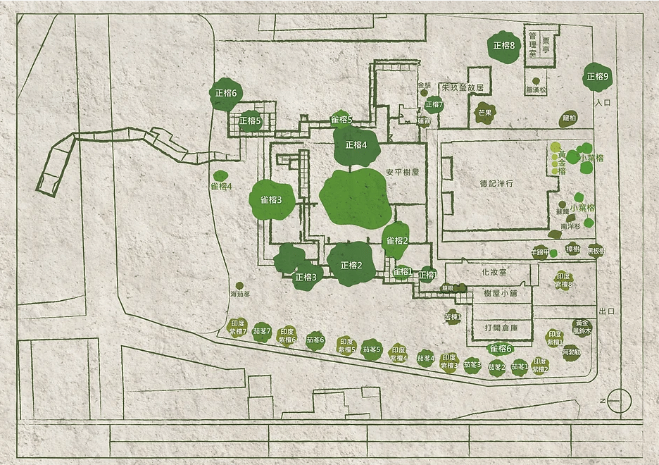 產業的遺跡與自然生態在「安平樹屋」有著混然一體的呈現,我們企圖在這個階段提出一個得以與之繼續衍化的設計,讓新舊構造與自然融合。如此,鐵鋼的框架在樹梢出了幾何的虛體,變成了枝葉空出來的路徑,路徑的葉牆,面貌隨著時間的流框而演化。